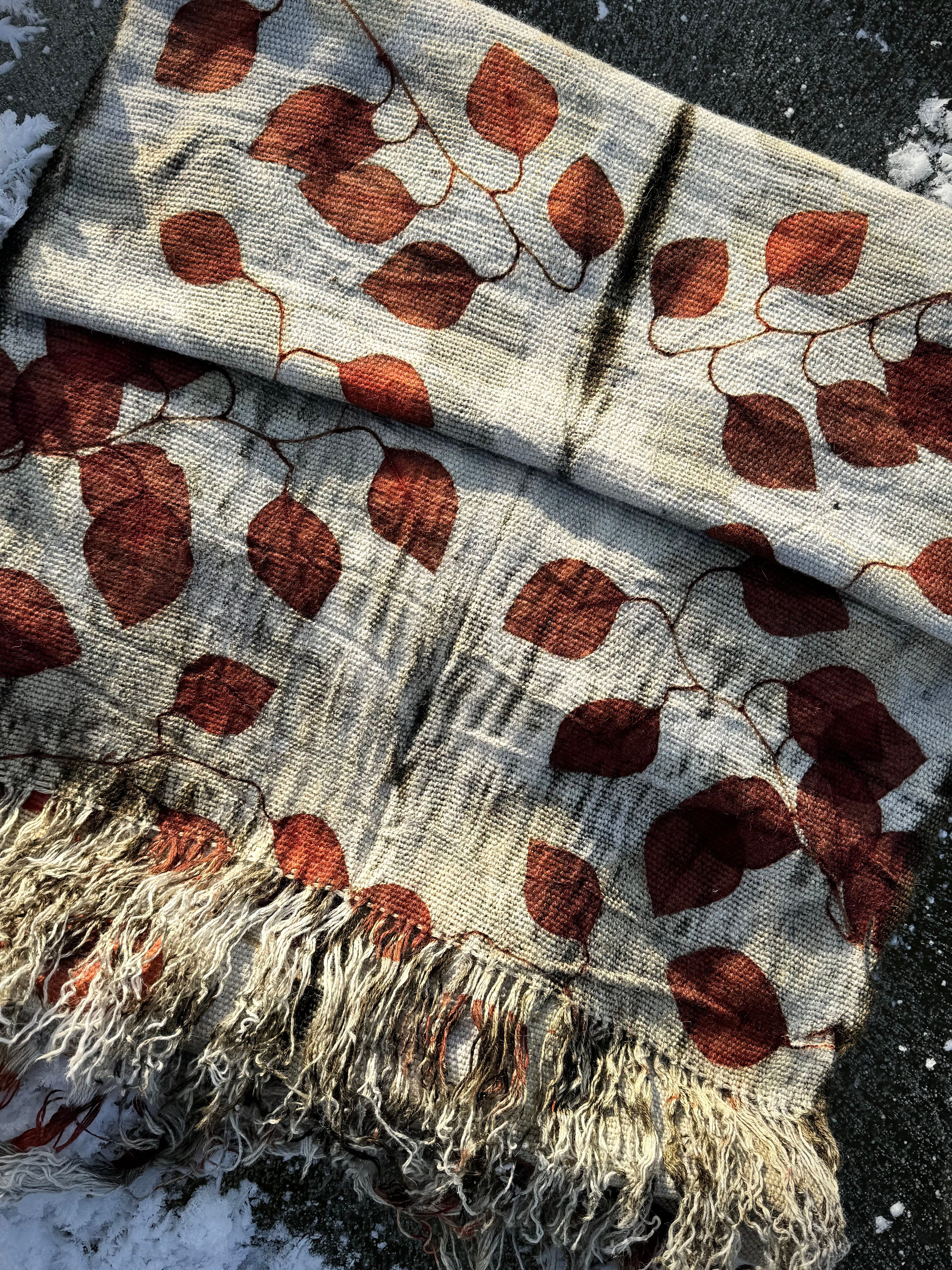 Heartleaf Eucalyptus Eco-Printed Silk-Wool Scarf