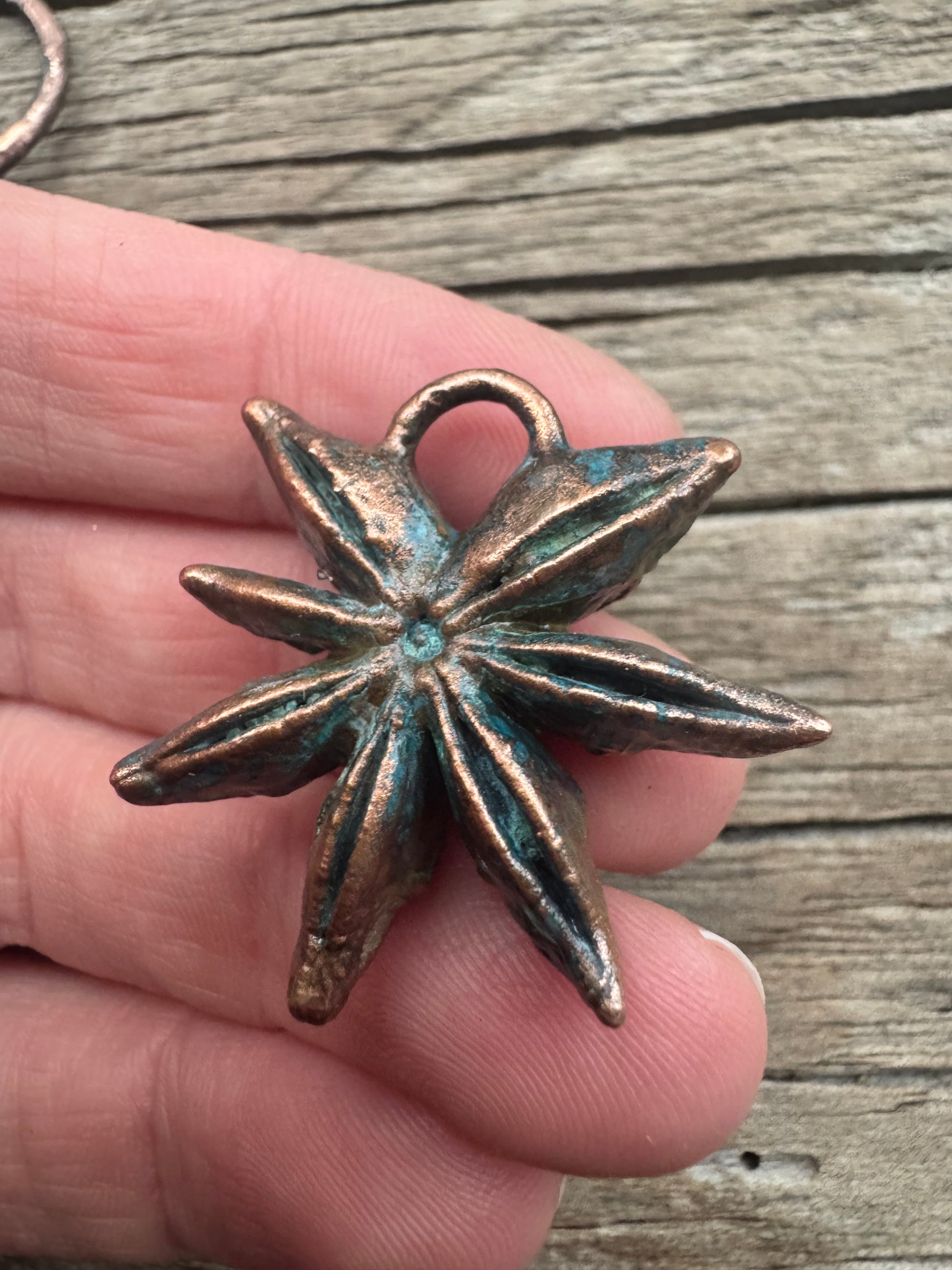 Star Anise | Electroformed pendant | Blue Patina